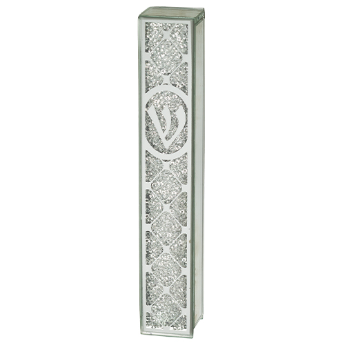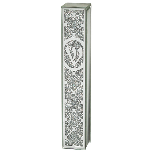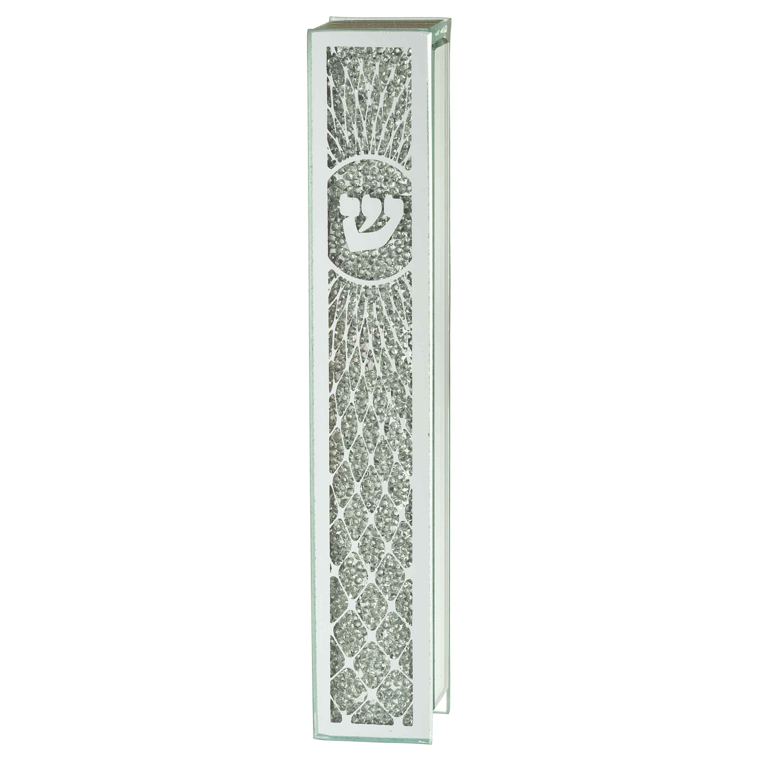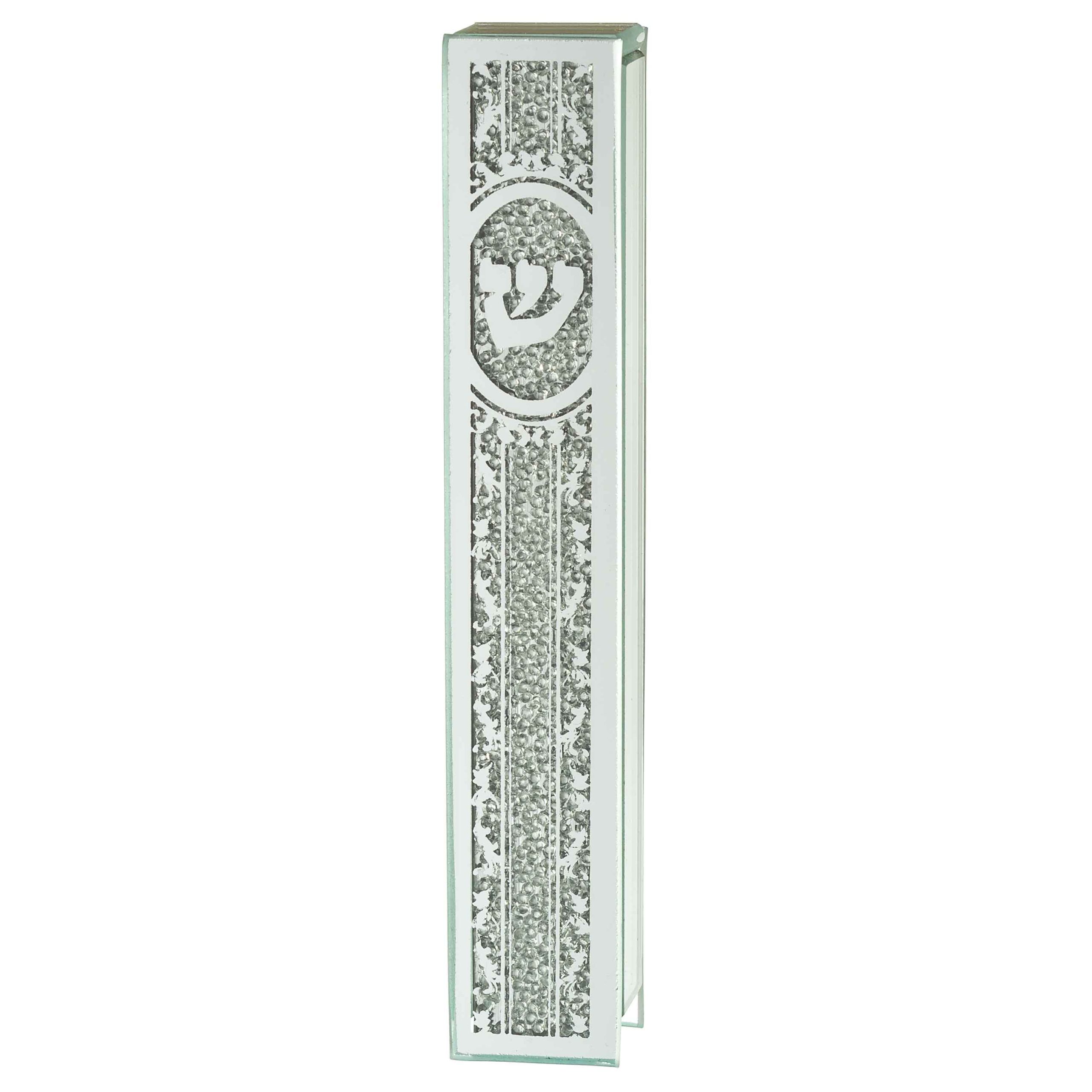 מזוזה זכוכית מהודרת עם מראה ואבנים כסף 12 ס"מ