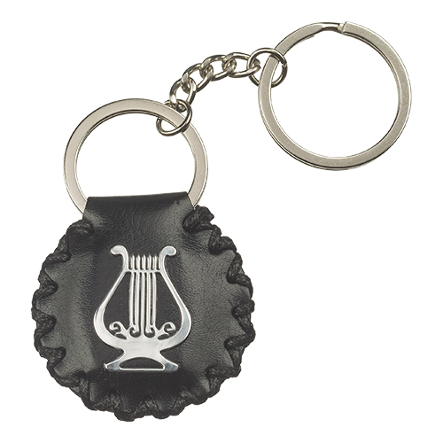 מחזיק מפתחות דמוי עור 4.5 ס"מ נבל וסגולת "שיויתי" בפנים