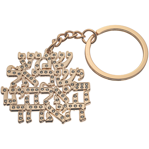מחזיק מפתחות גימור זהב "שמע ישראל" 6 ס"מ
