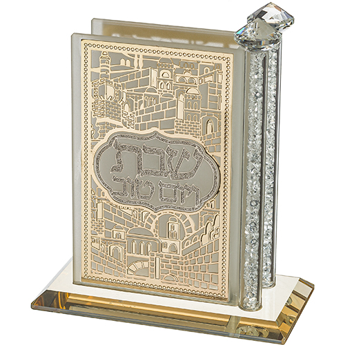 מעמד לגפרורים קריסטל עם פלקטה "ירושלים" 12×12 ס"מ