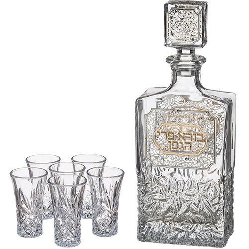 סט בקבוק קריסטל ליין עם פלקטה מהודרת עם 6 כוסות