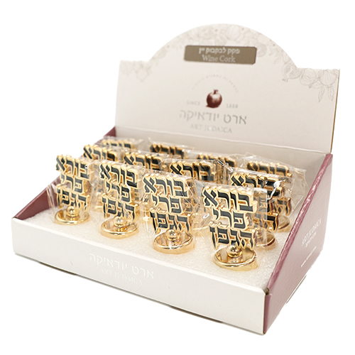 סטנד זהב פקק לבקבוק יין 12 יח "בורא פרי הגפן"