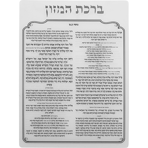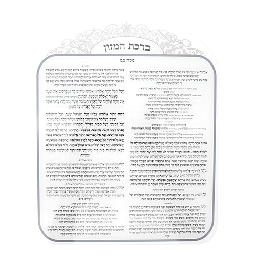 ברכת המזון מאקריליק נוסח ספרדי עיטור כסף 25X20