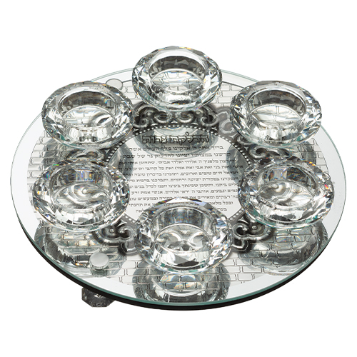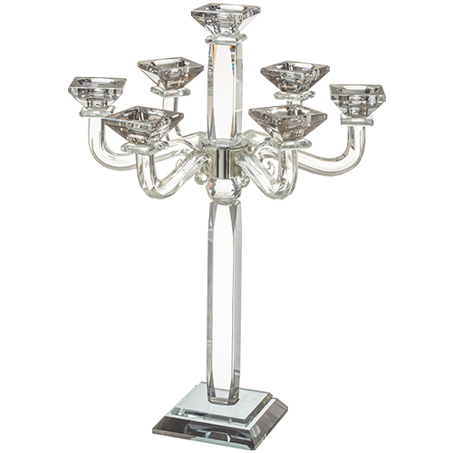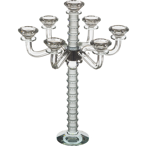 פמוט זכוכית עם פלקטה 6 פמוטי קריסטל 23 ס"מ