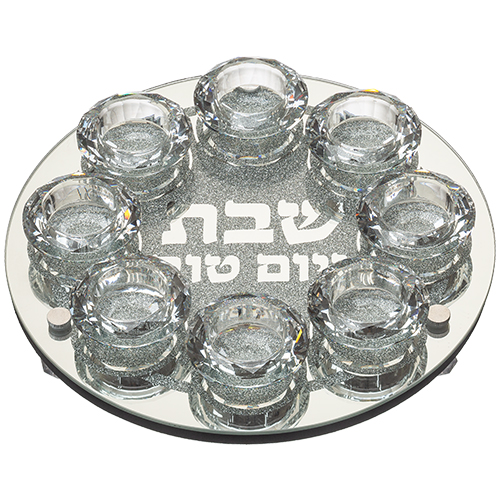 פמוט זכוכית עם 8 פמוטי קריסטל מהודרים – האש שלי 27 ס"מ