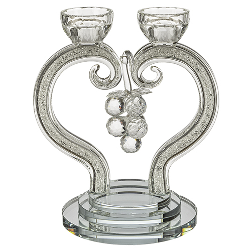 פמוט קריסטל לב – אבנים לבנות "ענבים" 21 ס"מ