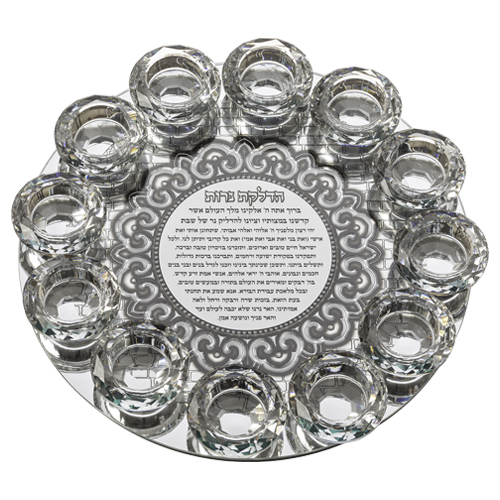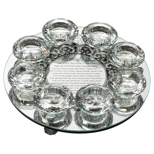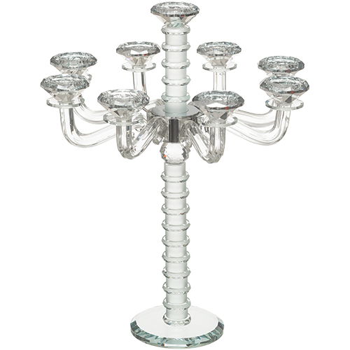 פמוט זכוכית עם פלקטה 8 פמוטי קריסטל 25 ס"מ