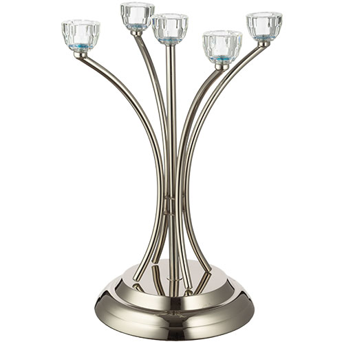 פמוט מתכת 5 קנים עם ראשי קריסטל 35 ס"מ