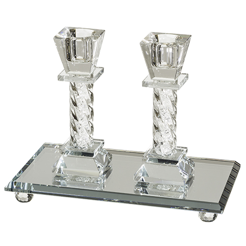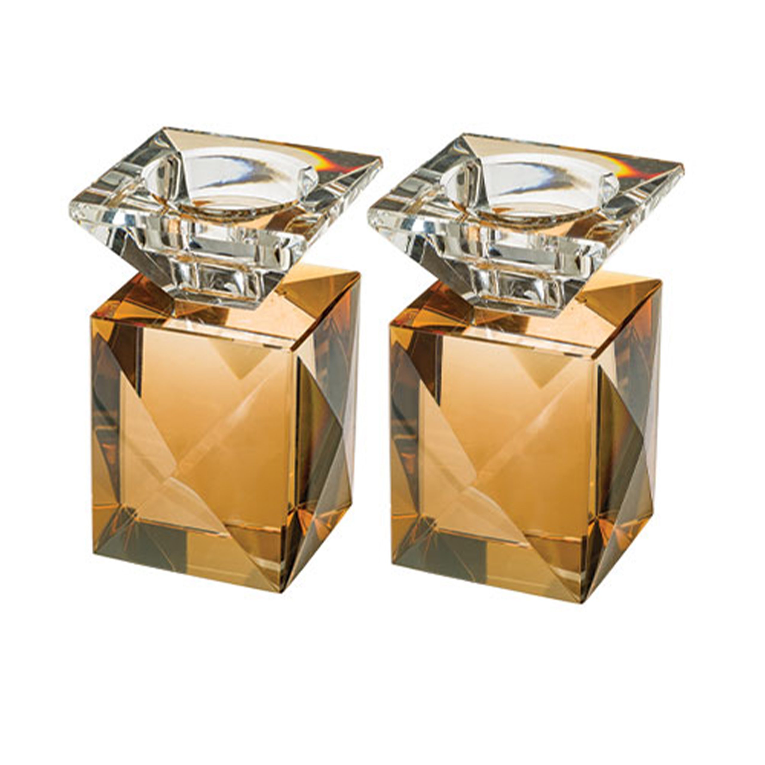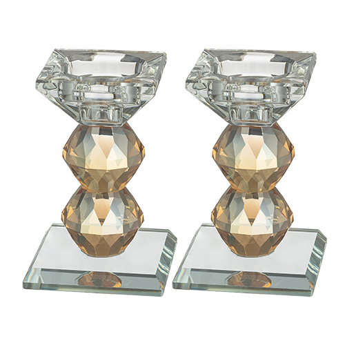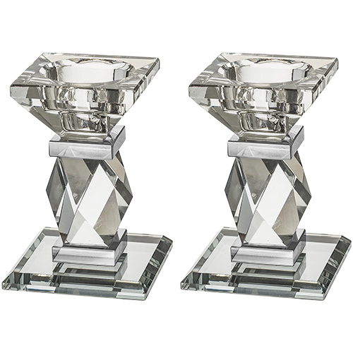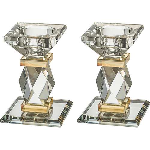 זוג פמוטי קריסטל מהודרים "יהלום" עם קנים 9 ס"מ