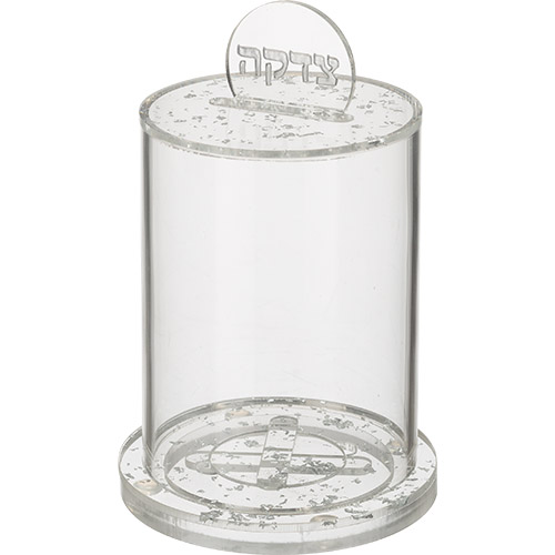 קופת צדקה אקריליק עם הדפסה – נצנצים כסף 13 ס"מ