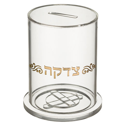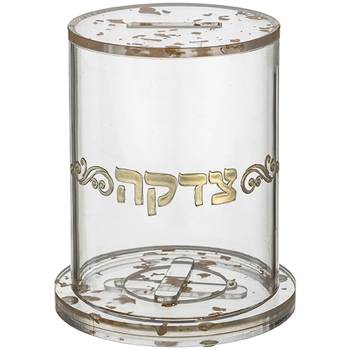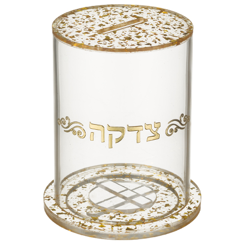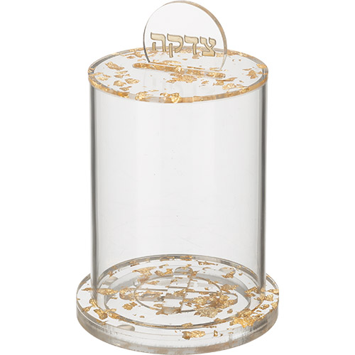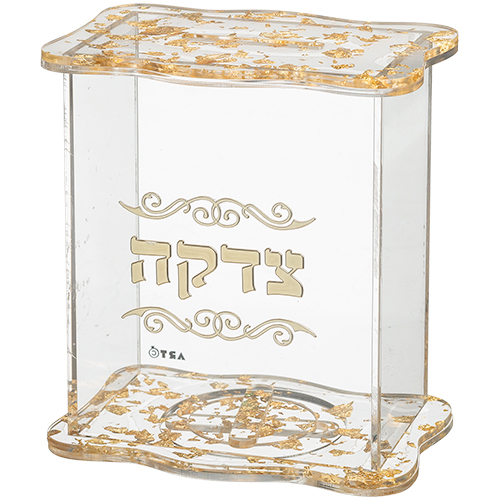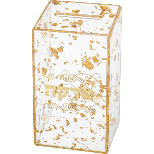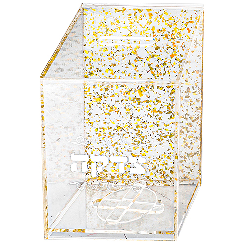 קופת צדקה אקריליק עם הדפסה – נצנצים זהב 13 ס"מ