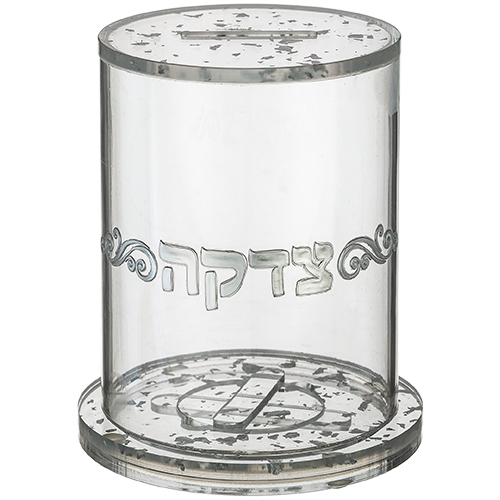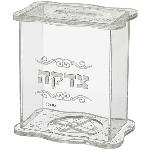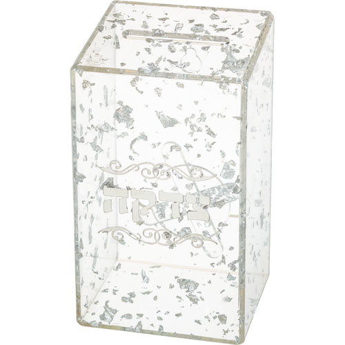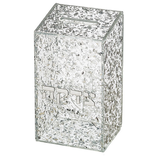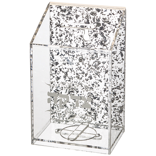 קופת צדקה מאקריליק כסף נצנץ 16X10 ס"מ