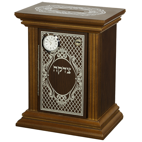 קופת צדקה עץ מהודרת עם מנעול ושעון 22×29 ס"מ