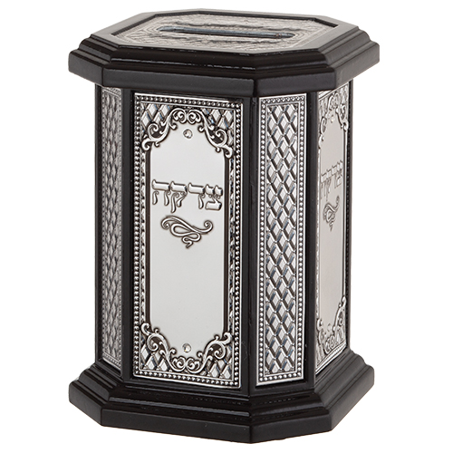 קופת צדקה עץ מהודרת עם פלקטה "עיטורים" 11×15 ס"מ
