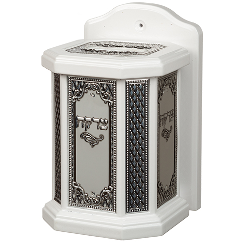 קופת צדקה עץ פיאנו לבן, מהודרת עם פלקטה "כותל" 14