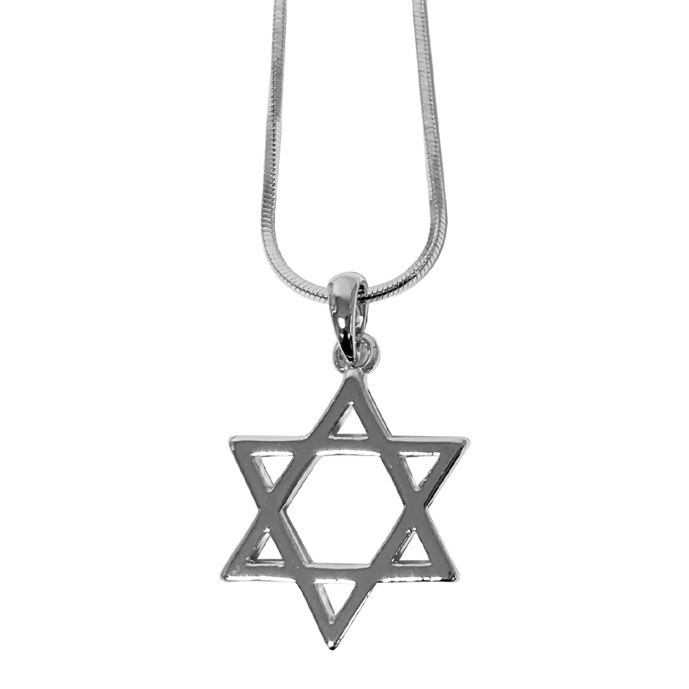 שרשרת רודיום 45 ס"מ מגן דוד כסוף גדול 2 ס"מ (5 באריזה)