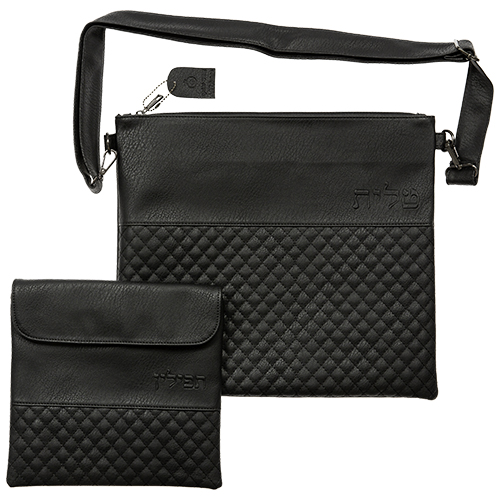 תיק מפואר לטלית תפילין דמוי עור גוון שחור 36X33 ס"מ