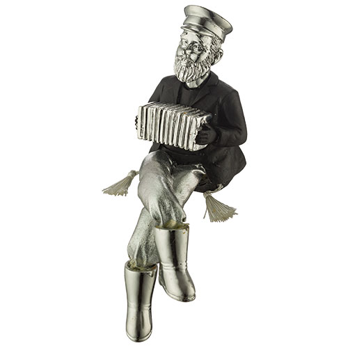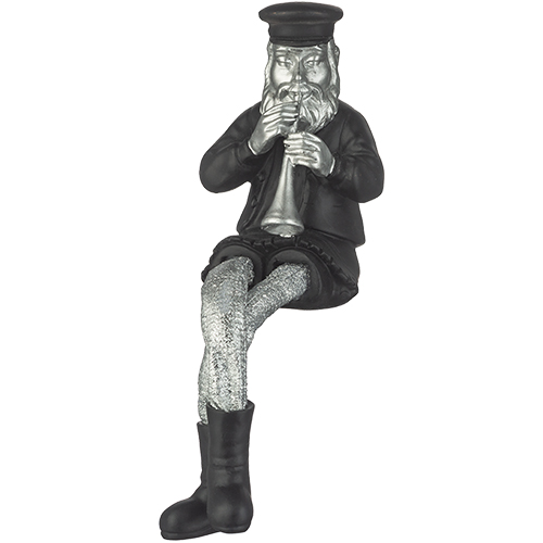 חסיד יושב מפוליריזן שחור עם כסף עם רגלי בד מנגן בחליל 19 ס"מ