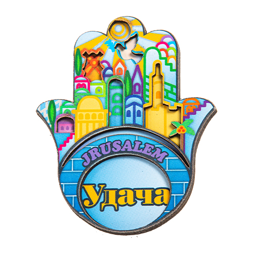 מגנט עץ "חמסה מזל" רוסית 8 ס"מ