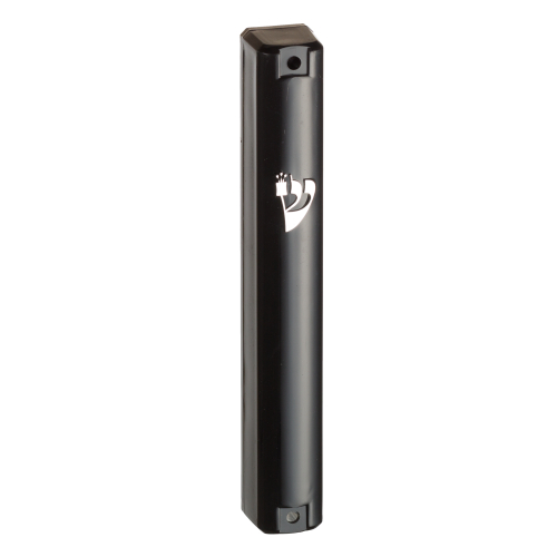 מזוזה פלסטיק 15 ס"מ שחורה ש כסף עם פקק גומי