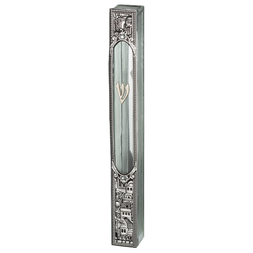 מזוזה זכוכית מהודרת עם פלקטה "ירושלים" 12 ס"מ
