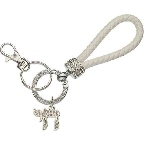 [מחזיק מפתחות ניקל עם לולאה שמע ישראל ושיבוץ אבנים