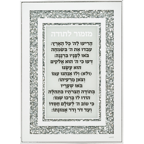 מסגרת זכוכית עם אבנים מזמור לתודה 25×35 ס"מ