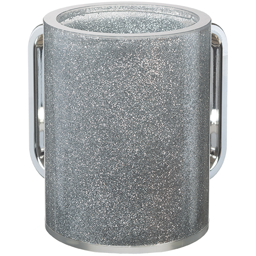 נטלה אקריליק מהודרת שקופה עם גליטר כסף וידיות זהב 13 ס"מ