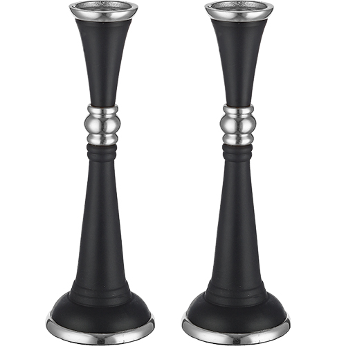 זוג פמוטי אלומיניום מהודרים – שחור וכסף 23 ס"מ
