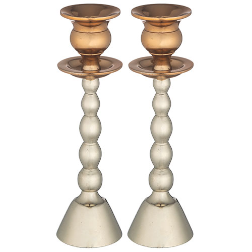 זוג פמוטי אלומיניום מהודרים – כסף ורוז גולד 21 ס"מ