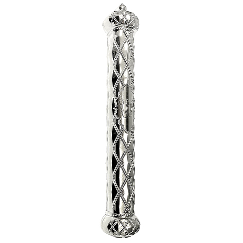 מזוזה פלסטיק כסופה 12 ס"מ "כתר ומעויינים" עם פקק גומי